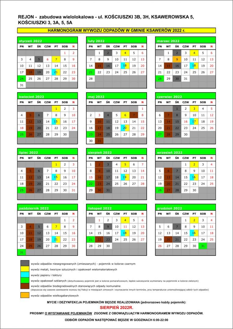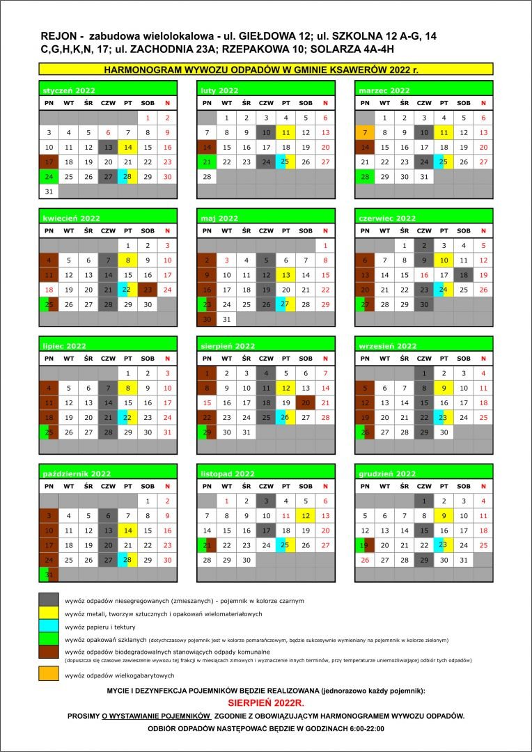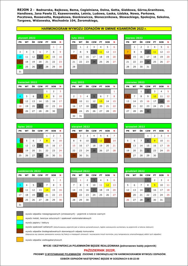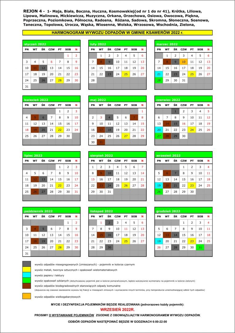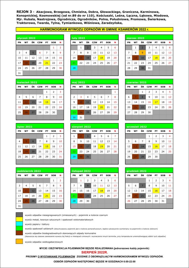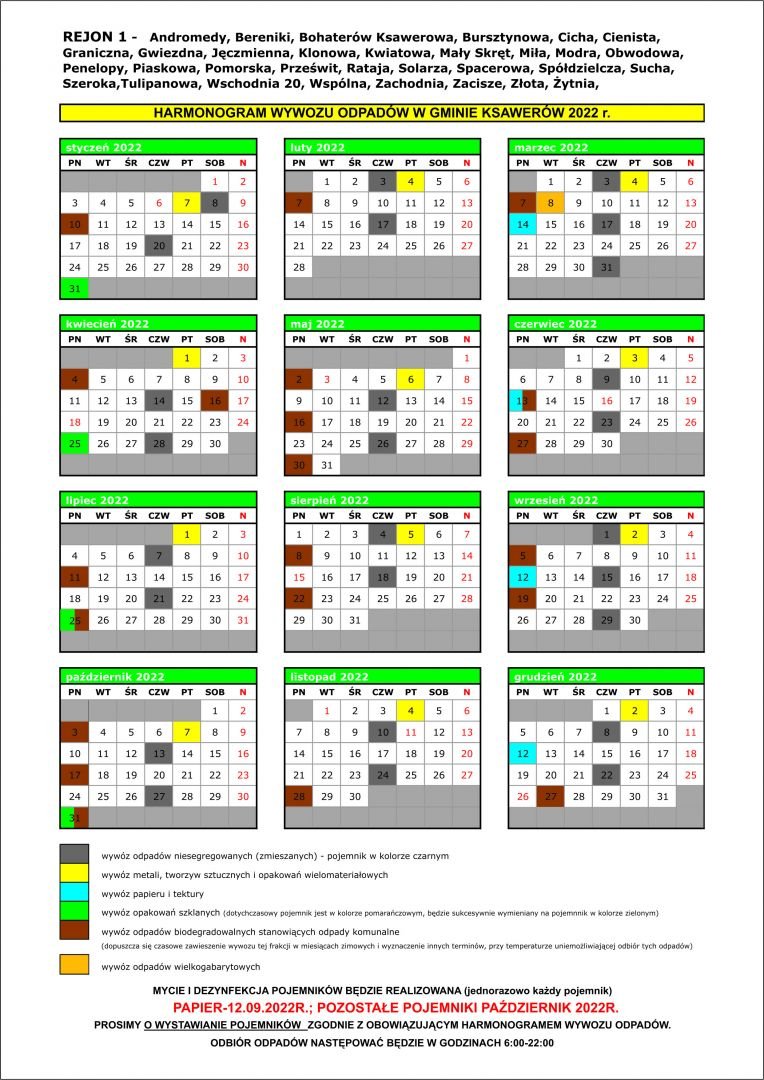 REMONDIS przesłał do Urzędu GMiny Ksawerów harmonogramy wywozu odpadów na 2022 r. i ulotki informujące.