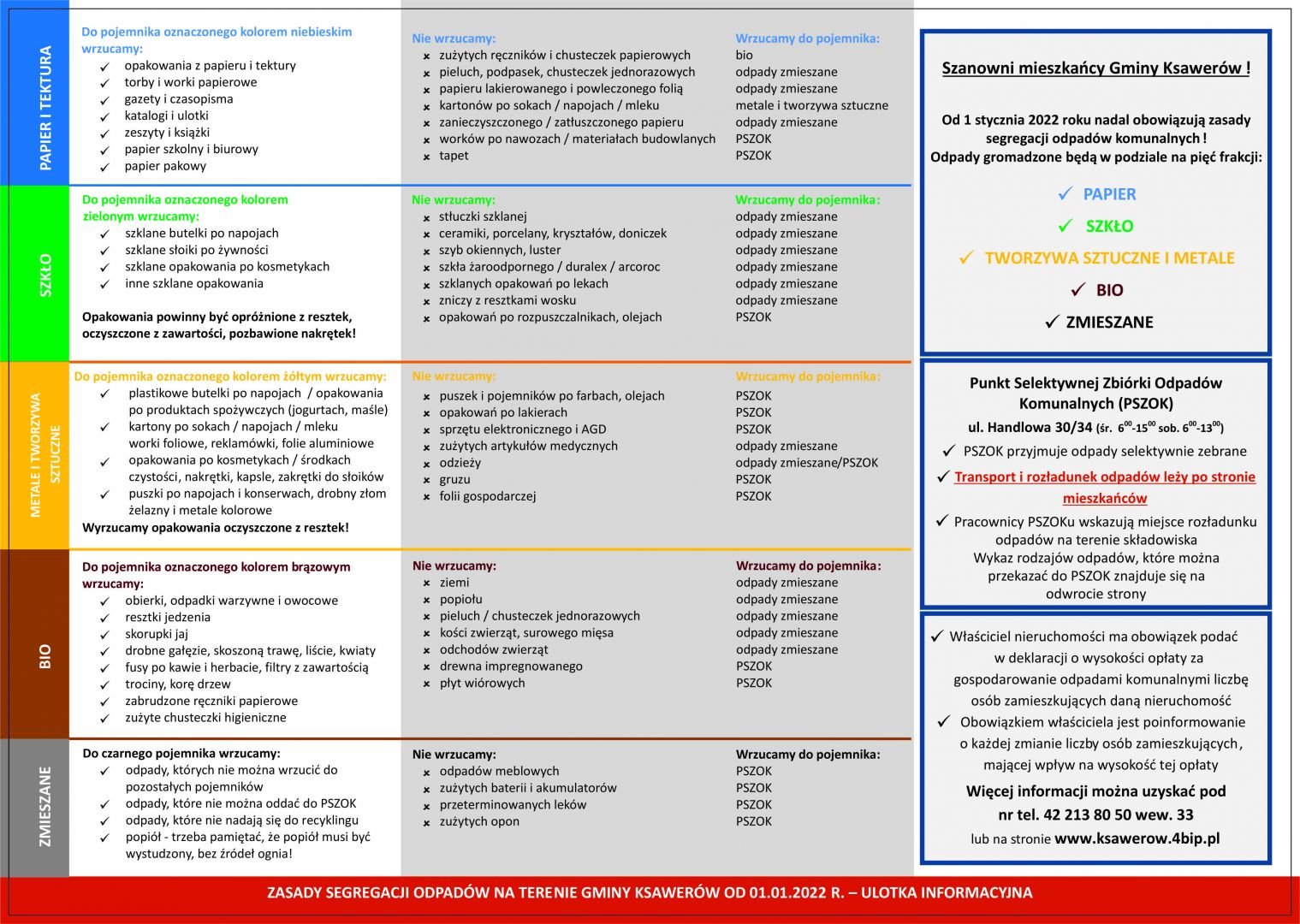Ulotka informacyjna - zasady segregacji odpadów na terenie Gminy Ksawerów od 1 stycznia 2022 r.